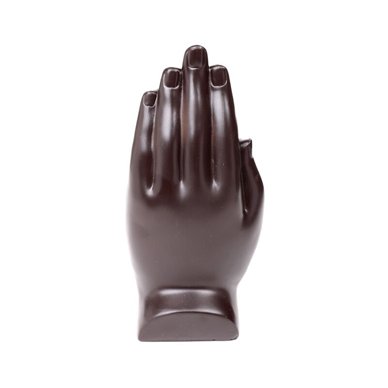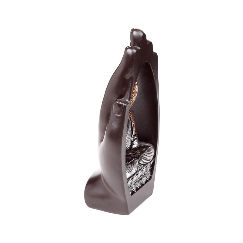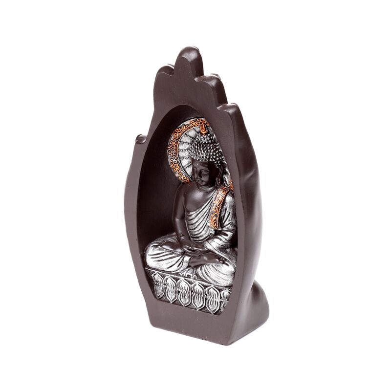 Buddha im Lotussitz in einer ausgehöhlten Hand Schwarz-Silber