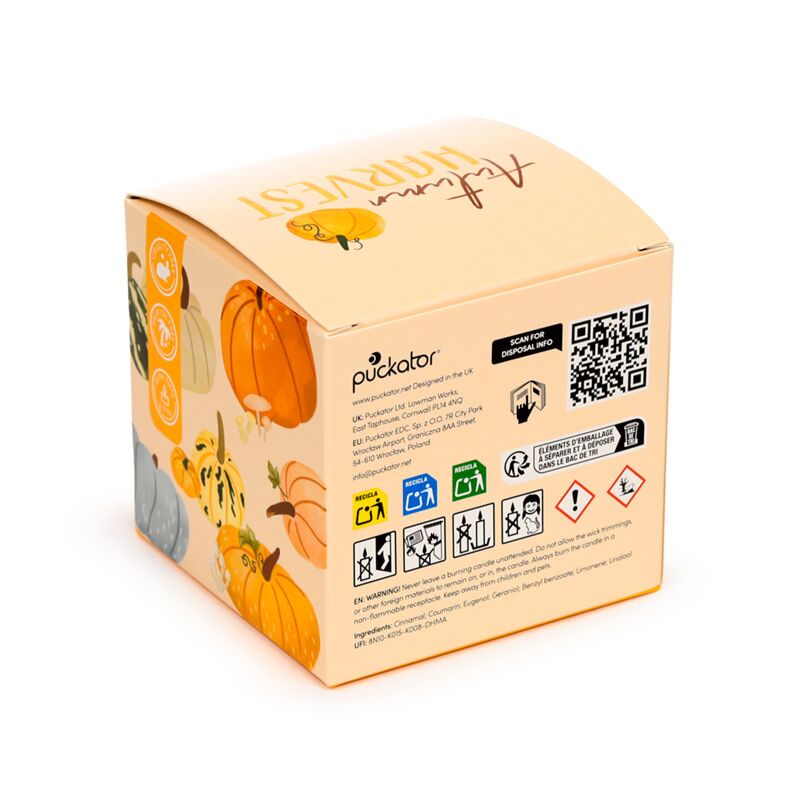 https://www.puckator.de/cand101-autumn-harvest-herbst-kuerbis-kuerbisduft-sojawachs-kerze-im-kuerbisglas.htmlCAND101Autumn Harvest Herbst Kürbis Kürbisduft Sojawachs-Kerze im Kürbisglas<p>Autumn Harvest Herbst Kürbis Kürbisduft Sojawachs-Kerze im Kürbisglas</p><ul><li><strong>Material:</strong> Glas, Korken, Sojawachs (30%), Paraffin (70%), Kerzenduft (5%)</li><li><strong>Ungefähre Brenndauer:</strong> 8 - 9 Stunden</li><li><strong>Keine Tierversuche:</strong>Ja</li><li><strong>Palmölfrei:</strong>Ja</li><li><strong>Parabenfrei:</strong>Ja</li><li><strong>SLS-frei (Sodium Lauryl Sulphat):</strong>Ja</li><li><strong>Phthalat-frei:</strong>Ja</li><li><strong>Sicherheitsinformation:</strong>Entfernen Sie den Korken während des Gebrauchs. Warten sie bis die Kerze abgekühlt ist, bevor Sie das Glas wieder mit dem Korken verschließen. Alle Hinweise zur Sicherheit und zum Gebrauch sind auf der Verpackung zu finden.</li></ul><p><strong>Produkttressourcen:</strong></p><ul><li><strong>Möchten Sie mehr über den Einkauf bei Puckator erfahren?</strong> Dann lesen Sie unseren<a href="/advice-centre" target="_blank" title="Puckator DE Leitfaden für Kundeninformationen"> Leitfaden für Kundeninformationen.</a></li></ul><p><img src="{{media url="wysiwyg/Symbols/CRUELTYFREE.jpg";}}" alt="Cruelty Free Packaging Symbol|Puckator" width="100" height="100"><img src="{{media url="wysiwyg/Symbols/SLSFREE.jpg";}}" alt="SLS Free Packaging Symbol|Puckator" width="100" height="100"><img src="{{media url="wysiwyg/Symbols/PARABENFREE.jpg";}}" alt="Paraban Free Packaging Symbol|Puckator" width="100" height="100"><img src="{{media url="wysiwyg/Symbols/PHTHALATEFREE.jpg";}}" alt="Phthalate Free Packaging Symbol|Puckator" width="100" height="100"><img src="{{media url="wysiwyg/Symbols/PALMOILFREE.jpg";}}" alt="Palm Oil Free Packaging Symbol|Puckator" width="100" height="100"></p>https://www.puckator.de/media/catalog/product/C/A/CAND101_001_1753192420.jpg2.12instock4.242.12502.12Puckator000https://www.puckator.de/media/catalog/product/C/A/CAND101_001_1753192420.jpg16234/Kerzen & Kerzenhalter/Autumn Harvest - Herbst/Ausverkauf2025-06-30T14:56:19+0000