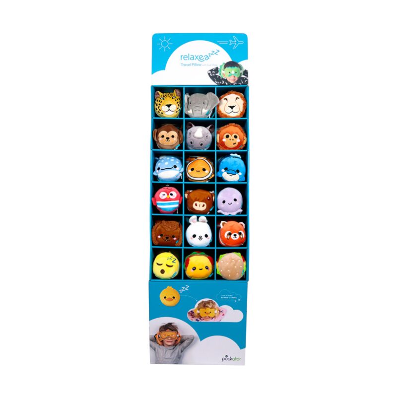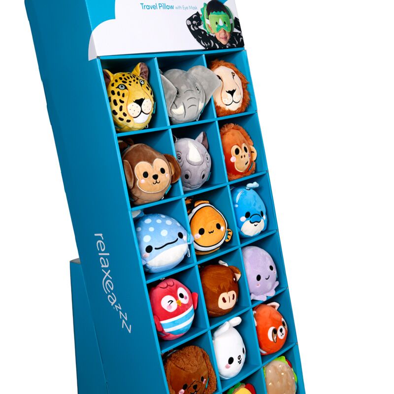FSDU Information: Diese FSDU ist so konzipiert, dass sie unsere Relaxeazzz Reisekissen- und Schlafmasken-Kollektion aufnimmt. Unsere Reihe freistehender Displayeinheiten ist ideal, um Produktpaletten oder -themen zu präsentieren und den Produkten maximale Wirkung in Ihrem Geschäft zu verleihen.