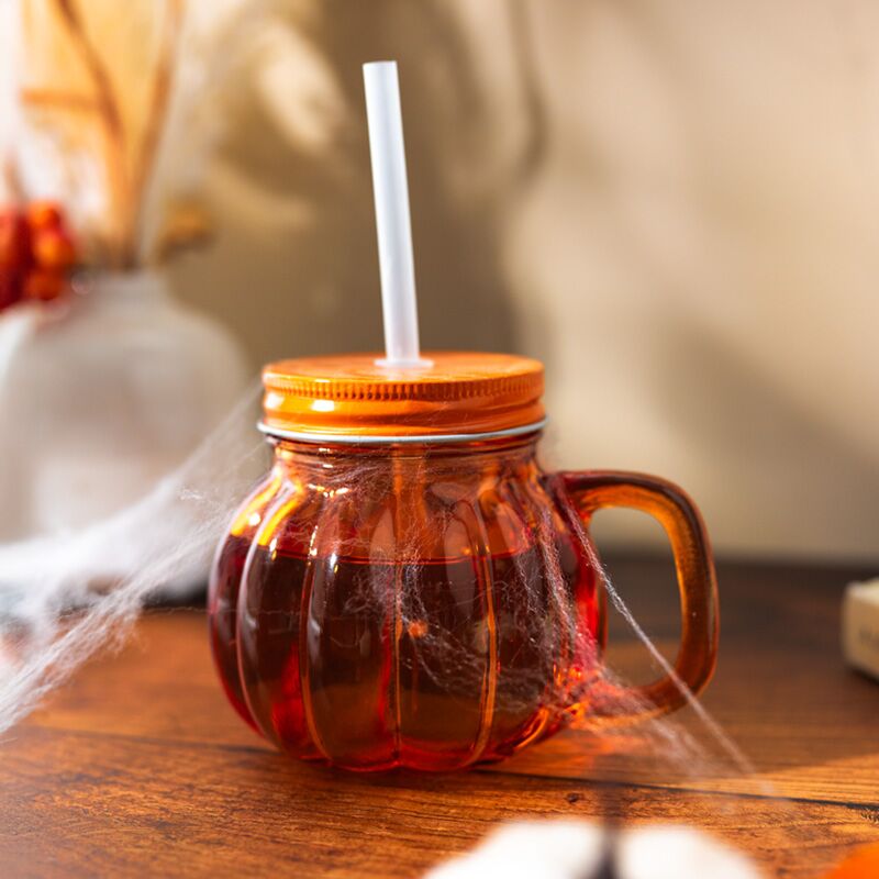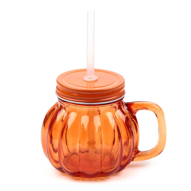 Kürbis Trinkglas mit Metalldeckel und Strohhalm