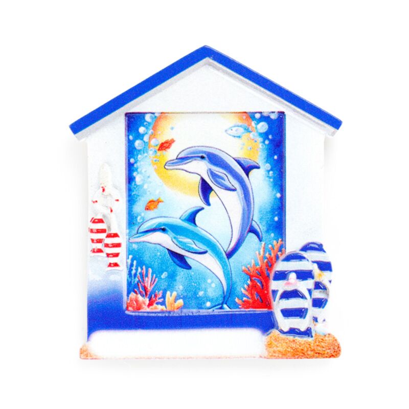 An der Küste Souvenir Magnet in Hüttenform - Beach Bar & Delfine
