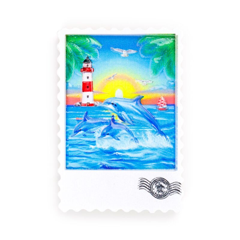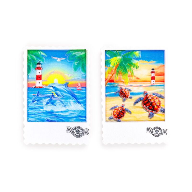 An der Küste Souvenir Magnet in Briefmarkenform - mit Schildkröten & Delfinen