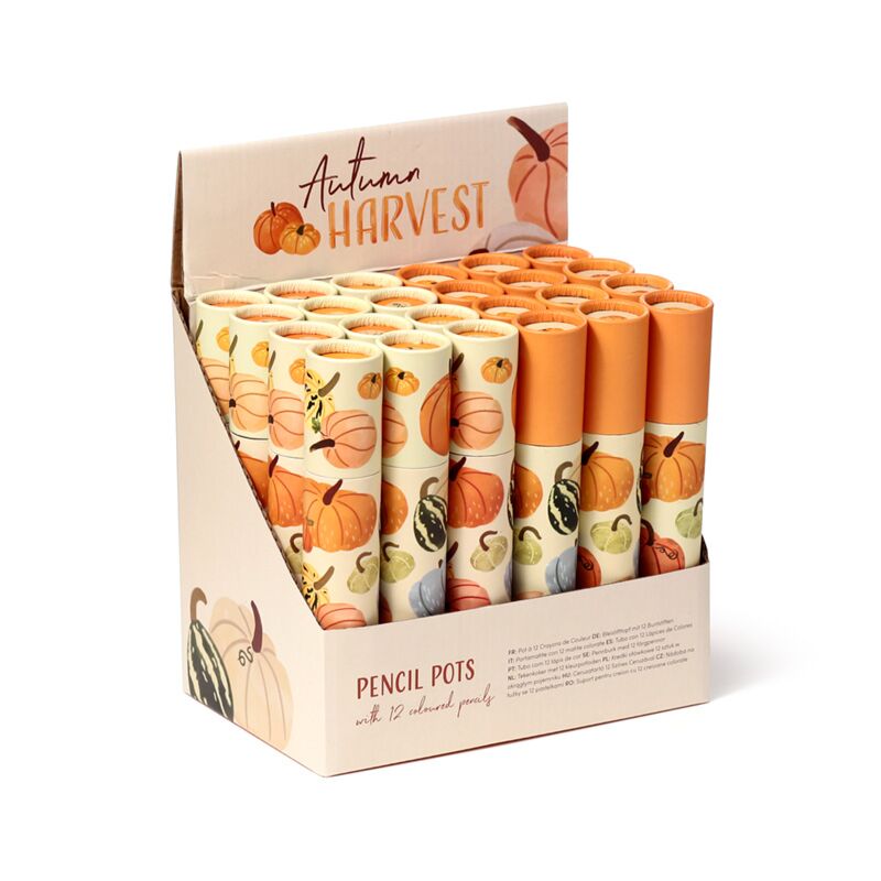 Autumn Harvest Herbst Kürbis Stiftebox mit 12 Buntstiften Groß