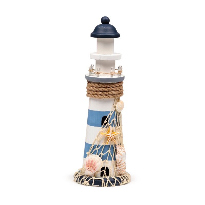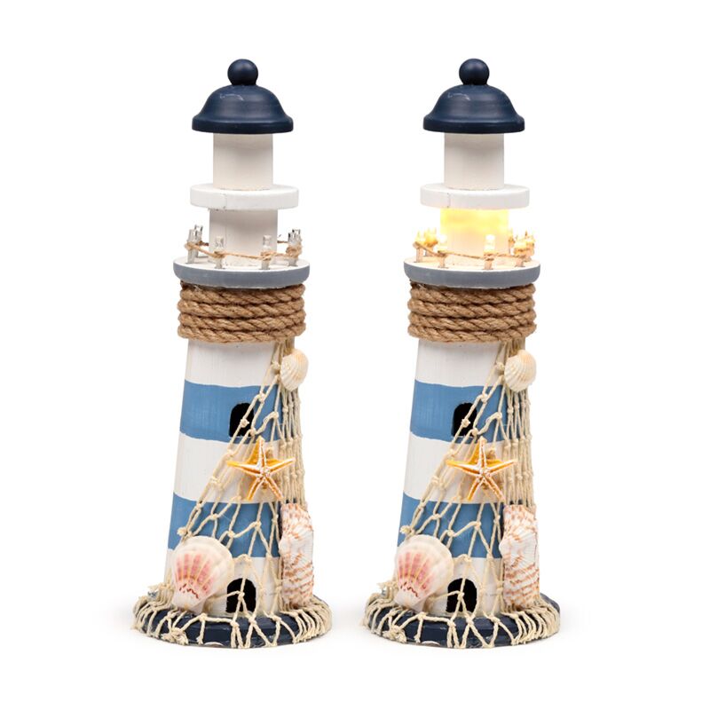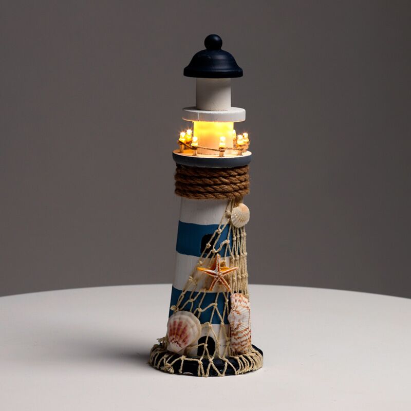 Strand-Souvenir - Leuchtturm Figur mit Muscheln und LED-Licht