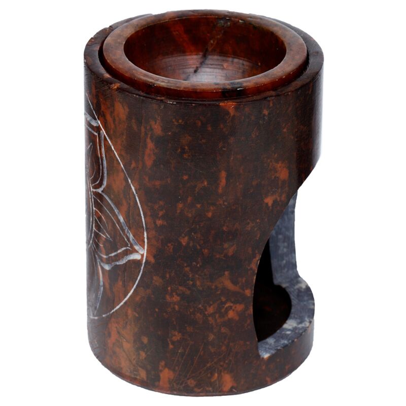 Violette Speckstein Düftlampe mit geschnitztem Chakra-Symbol