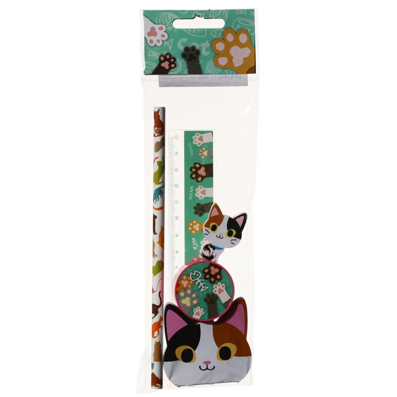 Lineal 15cm Bleistift Länge 17.5cm Radiergummi 3x2.5x0.5cm Sharpener 1x3.5x3.5cm Note pad 5x5cm
