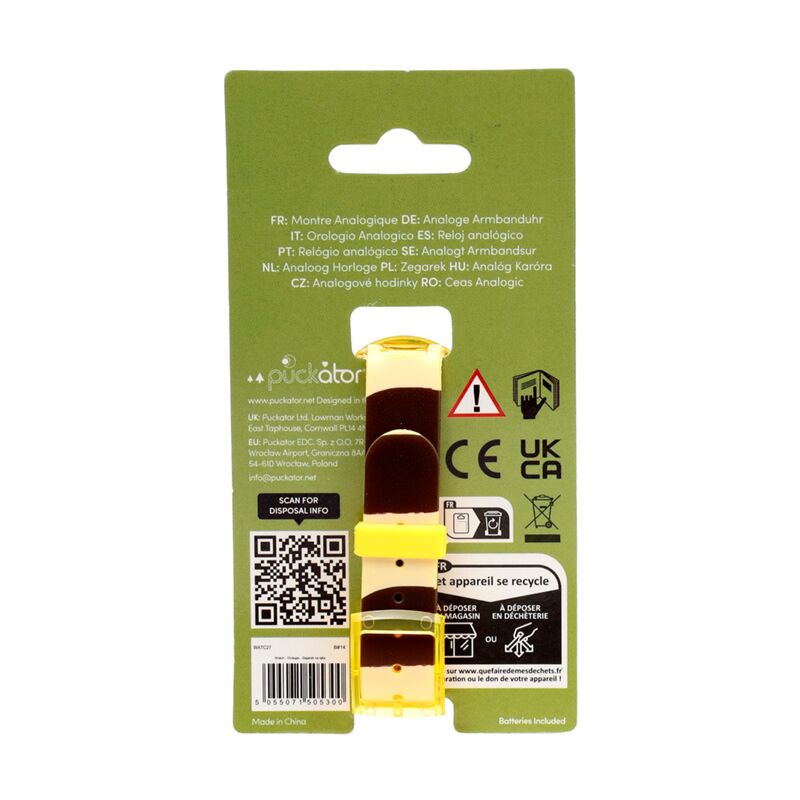 https://www.puckator.de/watc27-zooniverse-zootiere-analoge-armbanduhr.htmlWATC27Zooniverse Zootiere Analoge Armbanduhr<p>Zooniverse Zootiere Analoge Armbanduhr</p><ul><li><strong>Material:</strong> PVC und Metall</li><li><strong>Batterie inklusive:</strong> Ja</li><li><strong>Batterie-Typ:</strong> 1 x LR626</li><li><strong>CE/UKCA gekennzeichnet:</strong> Ja</li></ul><p><strong>Produkttressourcen:</strong></p><ul><li><strong>Möchten Sie mehr über den Einkauf bei Puckator erfahren?</strong> Dann lesen Sie unseren<a href="/advice-centre" target="_blank" title="Puckator DE Leitfaden für Kundeninformationen"> Leitfaden für Kundeninformationen.</a></li></ul><p><img src="{{media url="wysiwyg/Symbols/BATTERIESINCLUDED.jpg";}}" alt="Batteries Included Packaging Symbol|Puckator" width="100" height="100"></p>https://www.puckator.de/media/catalog/product/W/A/WATC27_001_1728643099.jpg4.73instock4.734.7300Puckator000https://www.puckator.de/media/catalog/product/W/A/WATC27_001_1728643099.jpg1757018893/Beauty Accessoires/Zoos & Tierparks/Zooniverse - Zootiere/Kinderuhren/Ausverkauf/Wieder auf Lager2024-06-26T08:28:25+0000