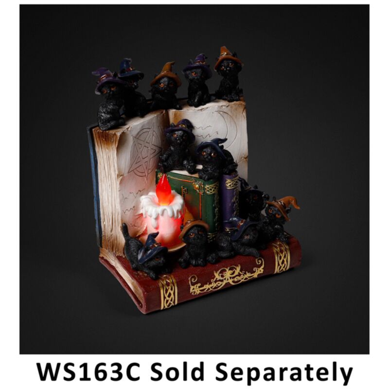 Witches Black Cat & Wise Old Magical Owl Katze Eule Sammlerfiguren LED-Display-Stand